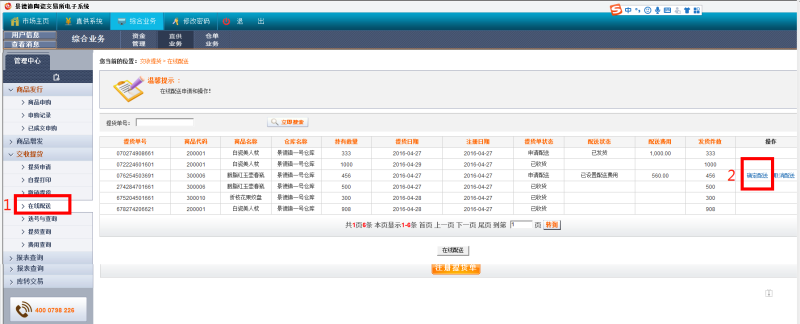 交收提貨---在線配送---確定配送,出庫操作流程完成。