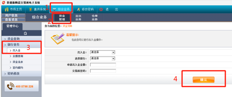 登錄客戶端---綜合業(yè)務(wù)---資金管理---銀行業(yè)務(wù)---出入金---填寫出入金信息后確認(rèn)。