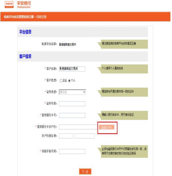 景德鎮(zhèn)陶瓷交易所有限公司網(wǎng)上開戶請(qǐng)?zhí)崆皽?zhǔn)備好這些信息:1、身份證正面照 2、平安銀行卡 3、若無平安銀行卡,持有其它銀行卡用戶,請(qǐng)先注冊(cè)平安電商平臺(tái)會(huì)員管理系統(tǒng),再進(jìn)行銀行卡綁定