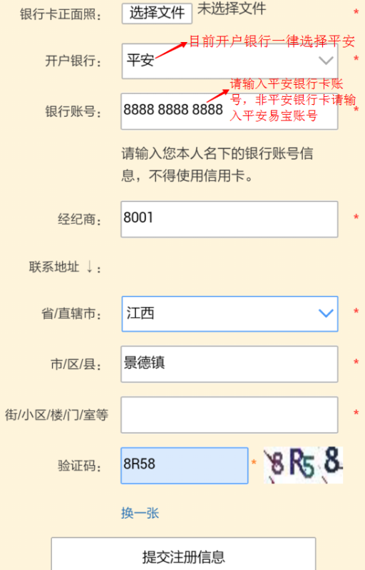 按要求填寫相關(guān)信息,選擇會員類別,個人客戶填寫示范如下: