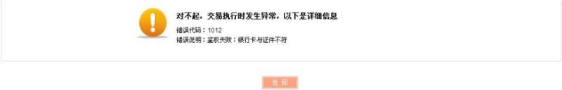 鑒權失敗后,提示錯誤信息,會員可以重新選擇其它銀行卡進行鑒權,如圖: