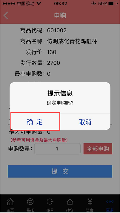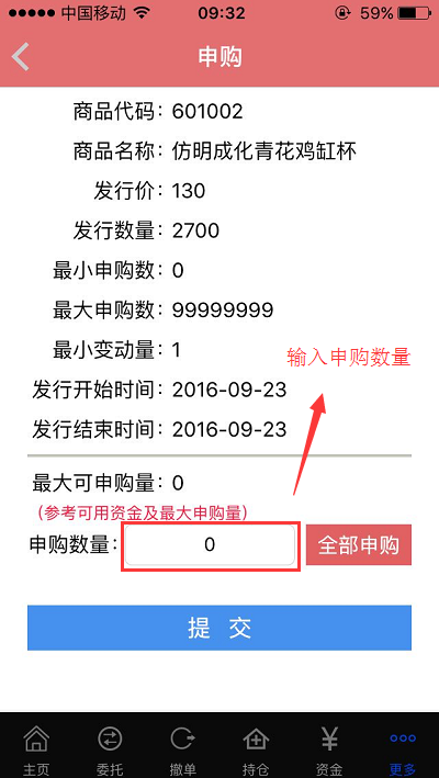第七步:輸入“申購數(shù)量”并點擊提交,如圖1-7