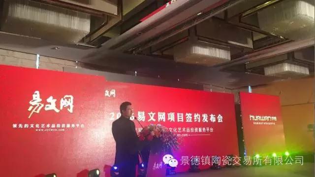 2016年11月26日,景德鎮(zhèn)陶瓷交易所和易文網(wǎng)達(dá)成戰(zhàn)略合作,項(xiàng)目簽約發(fā)布會(huì)隆重召開(kāi),景德鎮(zhèn)陶瓷交易所執(zhí)行董事周雪淞參加發(fā)布會(huì)并發(fā)表講話。