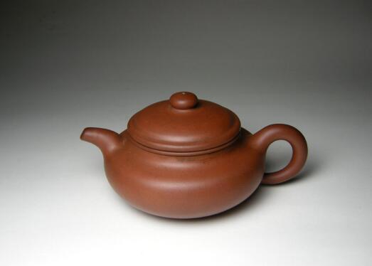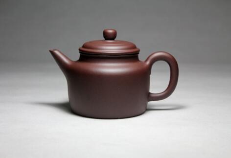 一說清代邵大亨初創(chuàng),原意是壺體仿照鼓型,后人仿制做這種壺形就成了仿古代壺型的意思了。另說最早見于近代趙松亭按吳大徴授意所作,身扁、腹鼓、頸高、蓋板平滑,壺蓋與口沿子母線吻合嚴密,合成圓線飽滿,扁鈕有力,虹鈕有勢,二彎流胥出自然 ;圓圈把勻勢而起,有些款把圓下有垂,富于靈動,整體骨肉亭勻,收展有度,有一氣呵成之暢。