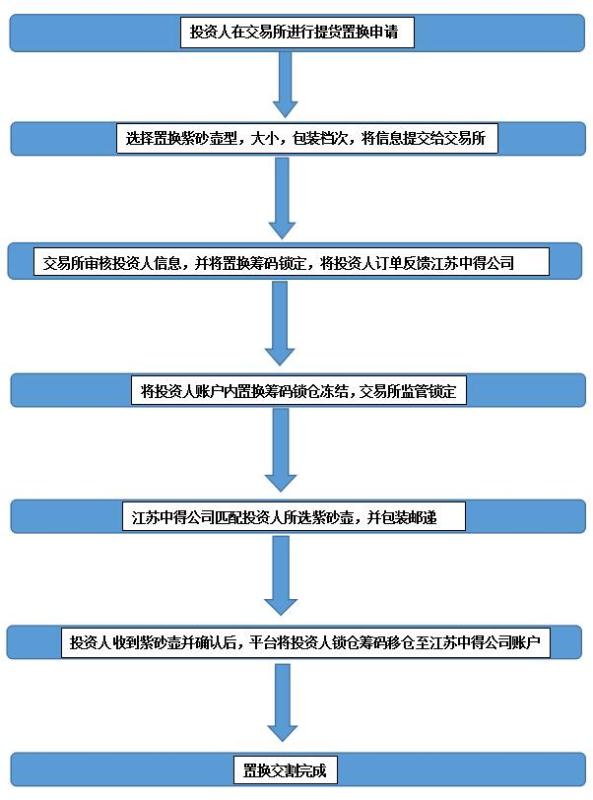 因目前線上藏品提貨手數(shù)為300手,而制作紫砂器只需少量手數(shù)。例如一把茶壺只需要20手1000g紫砂泥料,一個茶杯只需要5手250g紫砂泥料,根據(jù)器物大小用的泥料不等。江蘇中得文化發(fā)展有限公司為提高藏品升值率,從而推出“線上泥料藏品置換”活動,目的為給投資人降低提貨手數(shù),提供更優(yōu)質(zhì)的便捷服務。
